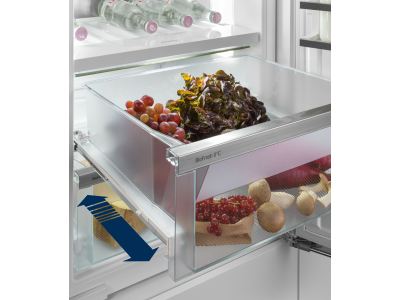 De BioFresh laden hebben een comfortabele zelfsluiting met zachte demping, de lade trekt zichzelf laatste 3 cm zachtjes dicht. De laden zijn bij 90° deuropening volledig uittrekbaar en uit te nemen.