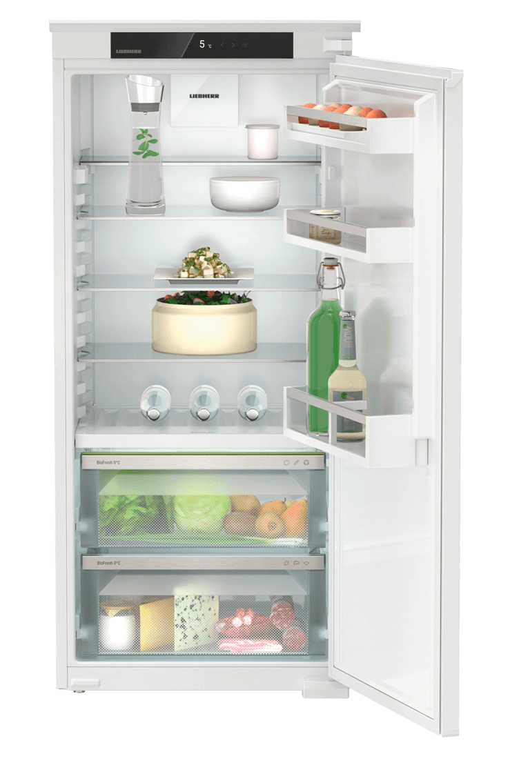 Deze inbouwkoelkast biedt net dat beetje extra. Het deelbare draagplateau en het geïntegreerde flessenplateau bieden extra flexibiliteit. In de 2 BioFresh laden op telescooprails bewaart u groenten en fruit tot 3x langer dan in een normale groentelade. De temperatuur is via het Monochroom display met Touch-bediening instelbaar en toont naast de actuele temperatuur ook alarmmeldingen bij bijv. een stroomstoring. Voorbereid voor smarthome toepassingen.