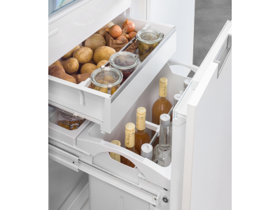 De uittrekbare wagen met keldertemperatuur (+6° tot +14°C ) is geschikt voor het bewaren van o.a. zuidvruchten en aardappelen. Maar deze inbouwkoelkast met 4-sterren vriesvak biedt meer. De deur met SoftSystem sluit altijd zacht en volledig en de VarioSafe biedt de perfecte opbergplek voor kleine potjes en verpakkingen. In de EasyFresh lade bewaart u groenten en fruit zodat smaak en structuur behouden blijven. Het Monochroom display met Touch-bediening is intuïtief te bedienen en voorbereid op smarthome.