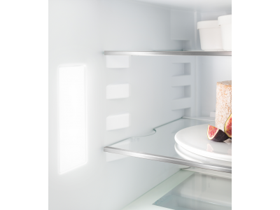 De LED verlichting is vlak in beide zijden van het apparaat geïntegreerd en zorgt voor een optimale lichtverdeling, ook als de koelkast vol is. Het gladde oppervlak maakt het schoonmaken een stuk eenvoudiger. Bij het openen van de deur wordt de intensiteit van de verlichting langzaam opgevoerd.