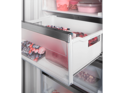 Het verplaatsen van ingevroren producten is niet nodig. In iedere lade kunnen producten snel en vitaminevriendelijk worden ingevroren. De rondom gesloten diepvriesladen met transparante voorzijde zijn extra hoog en uitneembaar. Daarmee garanderen zij een optimaal zicht op de producten in de lade. Iedere lade heeft 2 handgrepen waarmee de lade veilig kan worden uitgenomen.
