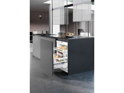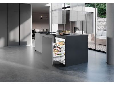 Met de LiftUp-Box kunt u de opbergruimte onder de uittrekbare lade volledig benutten. Hij is ergonomisch bevestigd, gemakkelijk uit te nemen en kan tot 4 kg dragen. Wanneer hij wordt uitgetrokken, duwt de LiftUp-Box omhoog uit de uitsparing in de bodem, waardoor het voedsel gemakkelijk kan worden verwijderd.