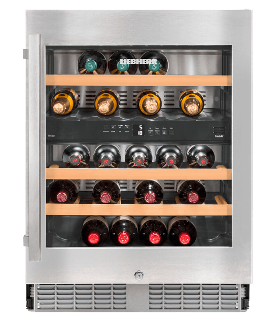 De Liebherr UWTes 1672 met 2 apart regelbare zones is ideaal voor het bewaren van maximaal 34 flessen rode en witte wijnen op drinktemperatuur. Onderbouw model met isolatieglasdeur en edelstaal kader en greep. De houten plateaus lopen op rails en de LED verlichting is dimbaar.