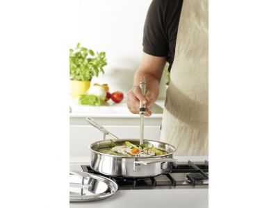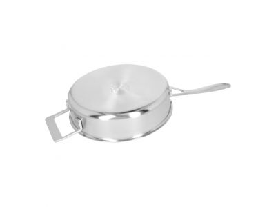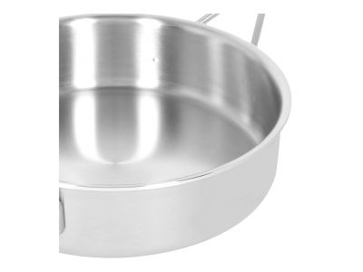 In onze roestvrijstalen Industry 5 lage sauteuse braad je je vlees, gevogelte, groenten en schaaldieren gelijkmatig aan. Na toevoeging van water, bouillon of wijn laat je ze verder garen onder deksel. Ideaal voor gevuld varkensgebraad, een aromatische bouillabaisse of een smaakvolle chili sin carne. Dankzij de grote oppervlakte (24 cm) is deze professionele sauteuse uit de Industry 5 collectie ook ideaal voor het snel inkoken van basissauzen of kreeftenbisque bijvoorbeeld. Dankzij het solide 5-lagenmateriaal tot aan de rand krijg je een goede warmteverdeling en heb je prima controle over de temperatuur. Samen met het perfect passende deksel zorgt deze innovatie ervoor dat smaak en vitamines optimaal bewaard blijven. Het roestvrije staal met Silvinox® verkleurt niet, laat zich makkelijk reinigen en gaat levenslang mee. De gelaste roestvrijstalen steel met gezandstraald oppervlak is extra stevig en blijft lang koel. Door de tegengreep kan je de pan makkelijk hanteren. Deze slimme en robuuste vormgeving in industriële stijl, door de Belgische designer Stefan Schöning, blijft je voldoening geven.