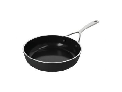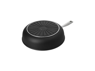 In de Alu Pro 5 hoge bakpan van 24 centimeter bak je met gemak roerei voor een hele tafel brunchgasten, een royale groentemix, een extra large portie scampi’s of enkele flinke kipfilets. Zonder kleven toch een krokant jasje? Check! En dat met minder vetstof. Je bereiding laat zich makkelijk omdraaien en serveren. Eenvoudiger en lichter verteerbaar, wat wil je nog meer? De keramische Ceraforce® antikleeflaag is ook een gezonde oplossing omdat ze volledig vrij is van PFAS. Beter voor jou en voor wie je kookt, en een pak milieuvriendelijker vergeleken met een traditionele anti-aanbaklaag. Gebruik enkel accessoires van hout of silicone, om beschadiging te voorkomen. De body in gesmeed aluminium is extra dik en meer dan stevig. Dankzij de unieke Radiant bodem is en blijft je pan extra stabiel en in optimaal contact met de kookplaat. De warmte verspreidt zich egaal. De exclusieve TriplInduc® technologie presteert perfect op inductie. Je hebt tot 30% minder energie nodig voor dezelfde temperatuur. Deze pan reageert supersnel zodra je overschakelt naar een andere fornuisstand. Geschikt voor alle kookplaten, zeker voor inductie. Met Alu Pro 5 haal je doordacht en vlot hanteerbaar design in huis, met een ijzersterke prijs-kwaliteitverhouding. Het matzwarte gesmede aluminium contrasteert prachtig met de blinkende roestvrijstalen greep. Dit lichtgewicht hanteer je supervlot en reinigen gaat als vanzelf. Ben je een liefhebber van grillen in de oven of van flamberen? Dan heb je ook een pan zonder antikleeflaag nodig.