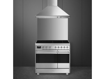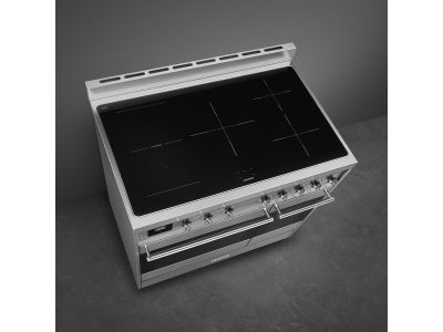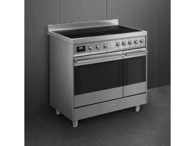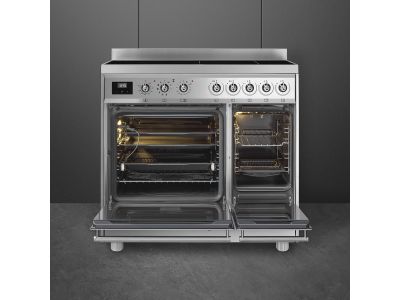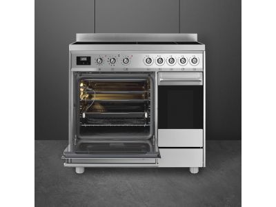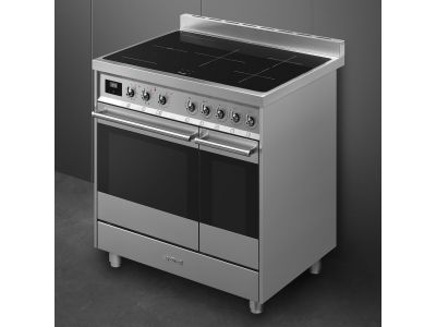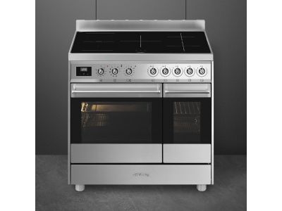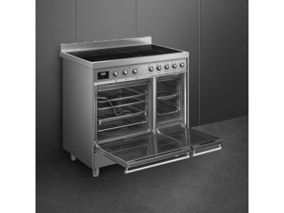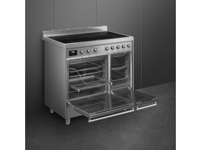 Fornuis-90x60 cm-Inductie-5 kookzones-2 ovenruimte(s)-Pyrolyse reiniging-Inox