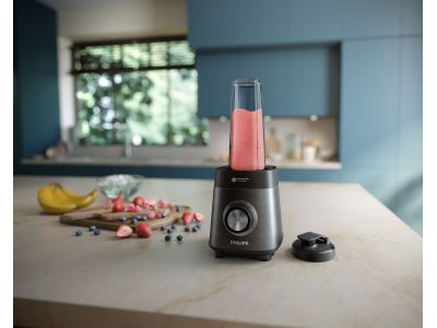 Blend direct in de beker en klik de dop erop voor instant smoothies onderweg.