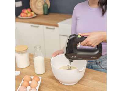 Ontdek de MultiMix 2 handmixer. Dit lichtere model combineert eenvoud en kracht. Hij wordt aangedreven door een 500W motor en zijn elegante metalen voorkant voegt een vleugje design toe.