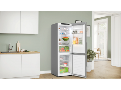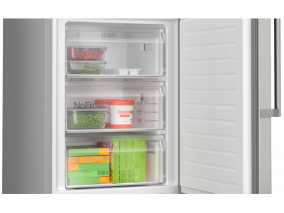 Serie 4 Koelkast - vrijstaand Bottom-Freezer NoFrost Koelk. VitaFresh 218 l, diepvr. 103 l****, externe handgreep, 186 x 60 x 66,5 cm Geborsteld staal AntiFingerprint deuren