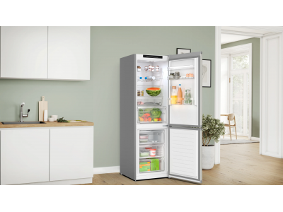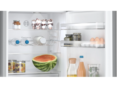Serie 4 Koelkast - vrijstaand Bottom-Freezer NoFrost Koelk. VitaFresh 218 l, diepvr. 103 l****, horizontaal geïnt. handgreep, 186 x 60 x 66,5 cm Geborsteld staal AntiFingerprint deuren