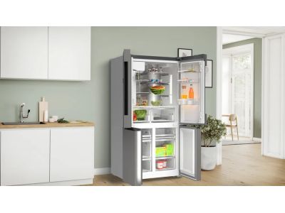 Met de Super Cooling functie kun je de temperatuur in je koelkast even verlagen voordat je boodschappen gaat doen. Zo blijven uw verse boodschappen op de juiste temperatuur. Druk eenvoudig op een knop om de temperatuur met minimaal 2°C te verlagen. En om onnodig stroomverbruik te voorkomen, schakelt de functie na ongeveer 6-15 uur automatisch terug. Bovendien kunt u, als uw apparaat is aangesloten, de Super Cooling-functie instellen via de Home Connect App.