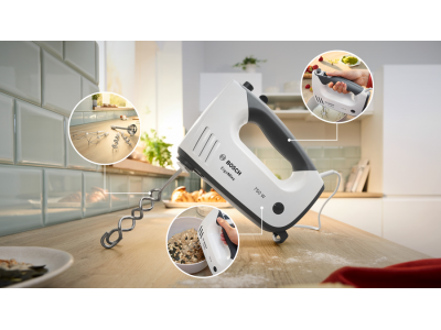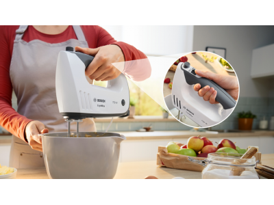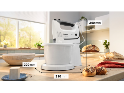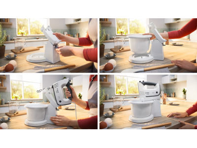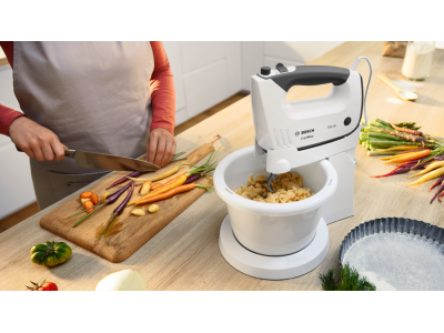 De handmixer zit perfect op de mengkom. Biedt de mogelijkheid om handsfree te werken.