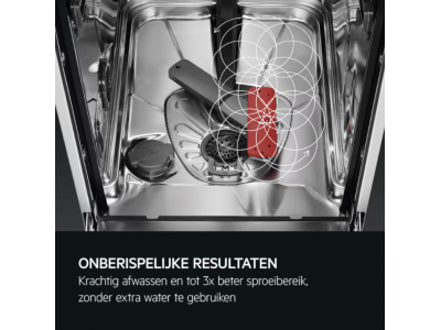 Geniet van vlekkeloze reiniging van de vaat met SatelliteClean®. Deze sproeiarm heeft een drie keer beter bereik dan de standaardnorm. Dankzij de dubbele roterende arm die voortdurend de sproeihoek wijzigt. Het water komt overal. Voor een complete reiniging.