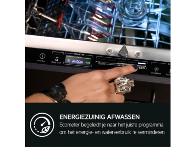 Verantwoorde keuzes worden makkelijk gemaakt. Gebruik de QuickSelect-schuifregelaar op het aanraakscherm om je gewenste cyclustijd te selecteren en de Ecometer toont je via groene aanduidingen het meest duurzame programma om energie en water te besparen.