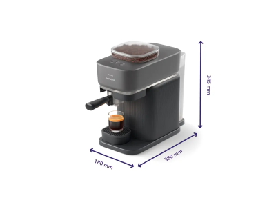 Zet koffie als een echte barista met één druk op de knop met de Philips Baristina BAR300/60. Doe je favoriete bonen in de machine, kies je koffie en de machine doet zijn werk. De bonen worden met de juiste druk gemalen, zodat jouw koffie hetzelfde smaakt als bij je favoriete koffietentje om de hoek. De gemalen koffie valt in de automatische tamper. Wanneer je koffie klaar is, haal je de tamper uit de machine en klop je `m leeg in de vuilnisbak. Zo ben je weinig tijd kwijt aan het schoonmaken van de machine. Dankzij het smalle formaat past de machine in iedere keuken. Door het strakke ontwerp is de Baristina een toevoeging op ieder aanrecht.