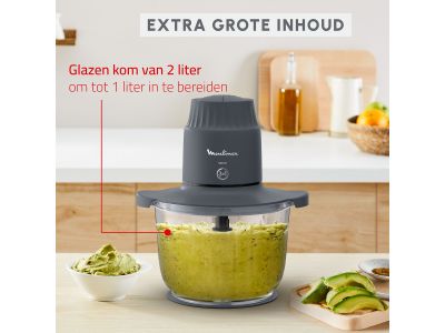 De Moulinex Choppeo 3-in-1 hakmolen is een veelzijdig keukenapparaat dat je kookervaring naar een hoger niveau tilt. Met twee snelheden kunt u de hakmolen aanpassen aan de specifieke bereiding die je nodig hebt, of het nu gaat om grof hakken of fijn malen. De lekdichte glazen kom biedt een ruime capaciteit van 1000 ml, zodat je een verscheidenheid aan ingrediënten kunt mixen zonder knoeien of morsen. Dit bespaart niet alleen tijd en moeite, maar zorgt ook voor een nette en efficiënte keuken.