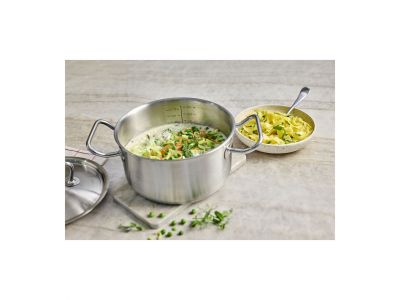 Pasta of quinoa koken, erwtjes en worteltjes aanstoven, havermoutpap maken … Met deze ClassicPro 3 kookpot (20 cm) tover je met plezier eten op tafel. Of je nu op gas of op elektrische of inductiekookplaten kookt: de 3-lagenbodem met aluminium verspreidt de warmte vlot. Deze kookpot kan bovendien probleemloos de oven in, als je een bereiding warm wil houden bijvoorbeeld. De ergonomische grepen, ook van hoogwaardig roestvrij staal, zijn stevig bevestigd en blijven lang koel. De speciale gietrand geeft je extra gebruiksgemak. Het deksel past perfect. Hierdoor gaat er geen warmte of stoom verloren en verspil je geen energie. Bovendien kan je hetzelfde deksel gebruiken op elke Demeyere pot met dezelfde diameter. Kortom: een mooie keuze, qua kwaliteit en qua look. Hier heb je jarenlang elke dag voldoening van.