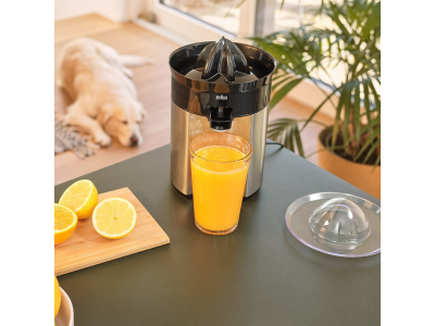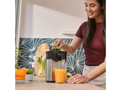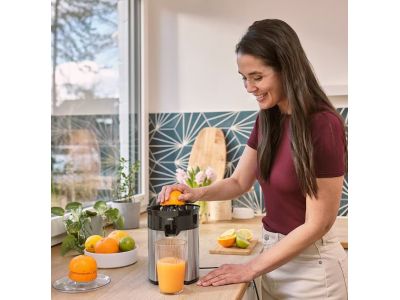 Met zijn elegante, geborsteld roestvrijstalen behuizing en hoogwaardig ontwerp, vormt de CitrusQuick 5 een opvallende blikvanger in elke keuken. De hoge tuit is ontworpen om je gemakkelijk grotere hoeveelheden sap te laten maken in hoge glazen tot 14 cm. En als je klaar bent met sap persen, kantel je de druppelstoptuit naar boven om te voorkomen dat er sap op het aanrecht wordt gemorst. Dankzij de universele perskegel haal je de maximale hoeveelheid sap uit zowel kleine als grote citrusvruchten, zonder van kegel te hoeven wisselen.