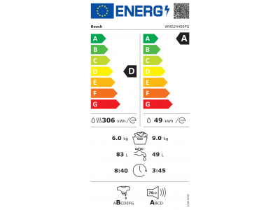 Energieverbruik voor wassen en drogen per 100 cycli : | 306 kWh |