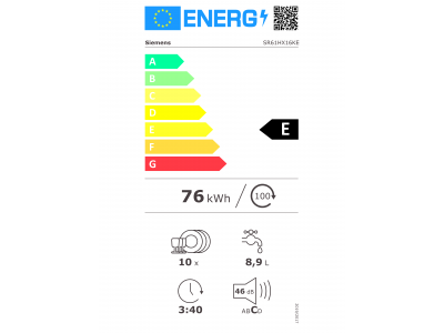 Energieverbruik in eco-programma per 100 cycli : | 76 kWh |
