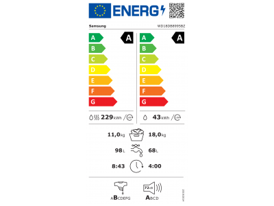 Energieverbruik voor wassen en drogen per 100 cycli : | 229 kWh |